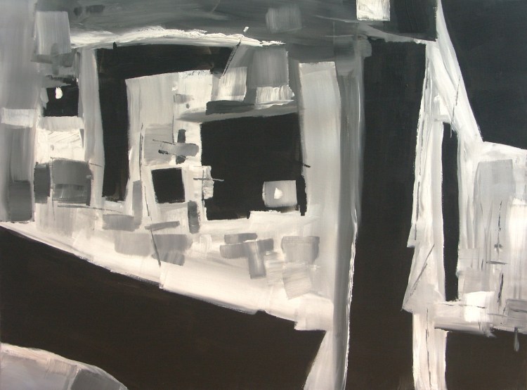 Un retour à l’essentiel en guise de purge de toutes couleurs. La palette ordonne l’essentiel, les touches noires et blanches attaquent une partition en demi-ton. Des oppositions prennent formes, des dualités aussi… Toujours cette obsession originelle de la matière noire et de la matière blanche qui s’affrontent ! Des « trous noirs » se manifestent, des « trous blancs » se cachent en toute transparence. L’expansion de l’énergie pure transfigure tous mouvements en sédimentation de formes qui s’architecturent… Puis, la lumière se courbe pour progressivement révéler les premières couleurs d’oxyde rouge et de terre d’ombre. L’artiste sait que désormais, il sera à jamais rappelé à cette discipline de la purge, pour renaître !