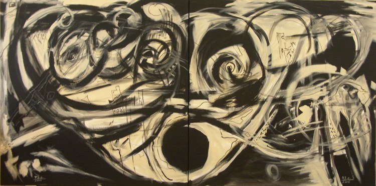 UNIVERS – Acrylique sur toile 200 x 100 (diptyque 2 panneaux)